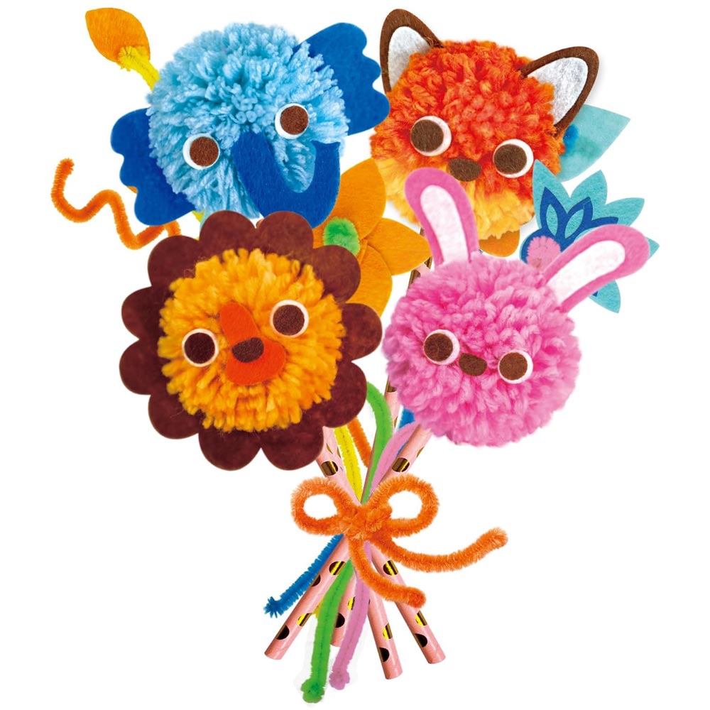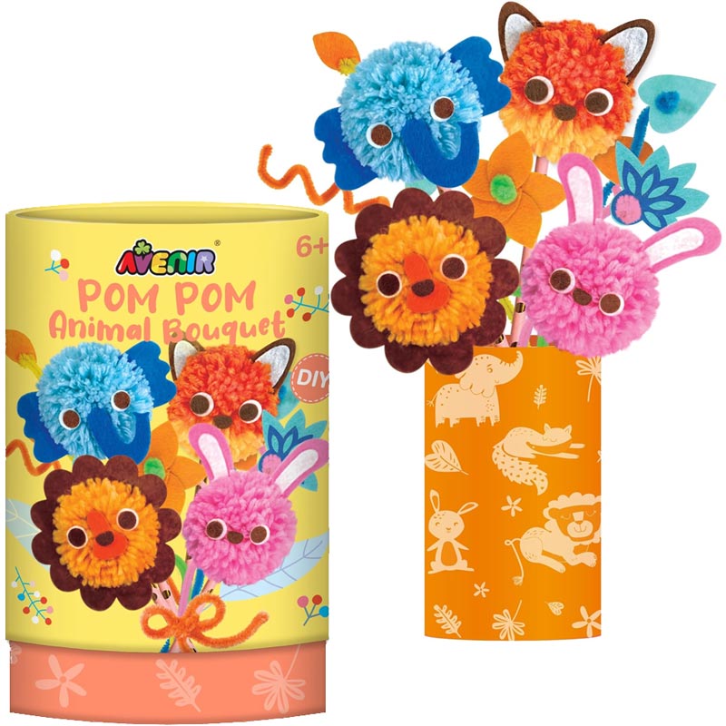 Az Avenir pom-pom csokor készítő készlet egy vidám kreatív játék, amelyben a gyerekek puha, színes szőrgombóc állatfigurákat készíthetnek.