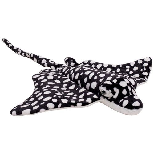 Prémium minőségű, Nature Planet márkájú, 68 cm hosszú élethű fekete-fehér, foltos plüss sasrája, műanyag szemekkel.