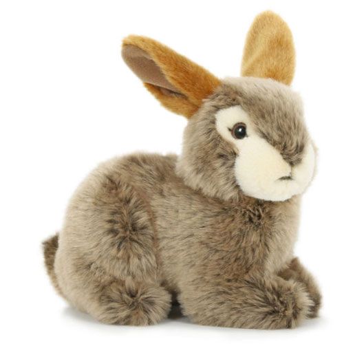 Prémium minőségű, Semo márkájú, 20 cm-es élethű, fekvő plüss barna mezei nyuszi műanyag szemekkel.