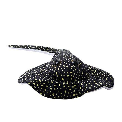 Prémium minőségű, Nature Planet márkájú, 105 cm hosszú élethű óriás fekete-sárga foltos plüss rája, műanyag szemekkel.