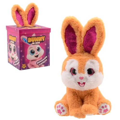 Nyuszi a dobozban csillogó szemekkel és fülekkel, 25 cm, barna