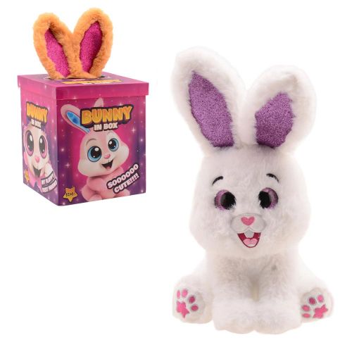 Nyuszi a dobozban csillogó szemekkel és fülekkel, 25 cm, fehér