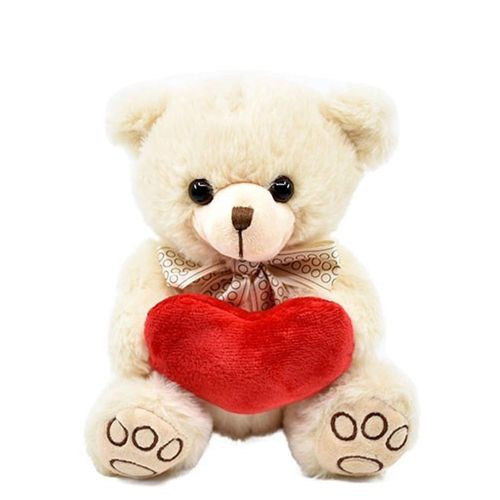 Szerelmes, 20 cm-es masnis krém színű plüss maci szívvel, Valentin napra, évfordulóra.