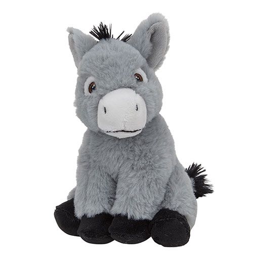 Nature Planet márkájú, 18 cm-es ülő plüss szamár hímzett szemekkel.
